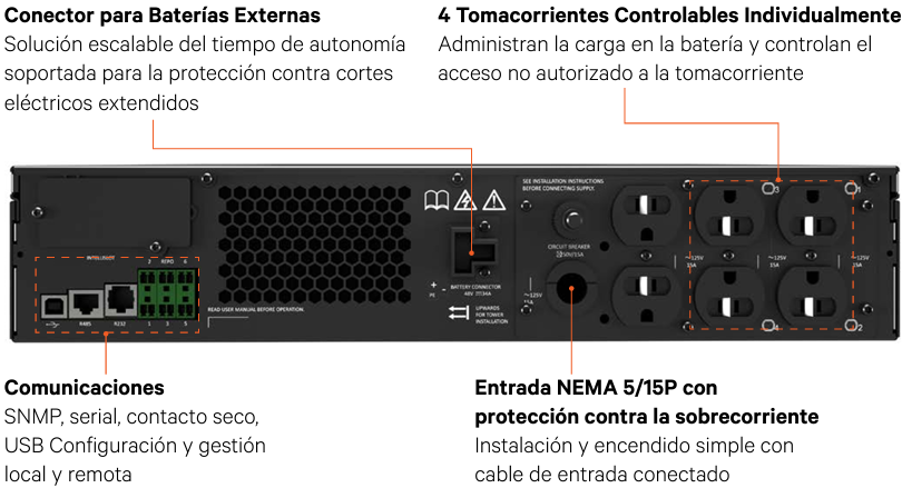 - Tomacorrientes de salida controlables de forma individual.